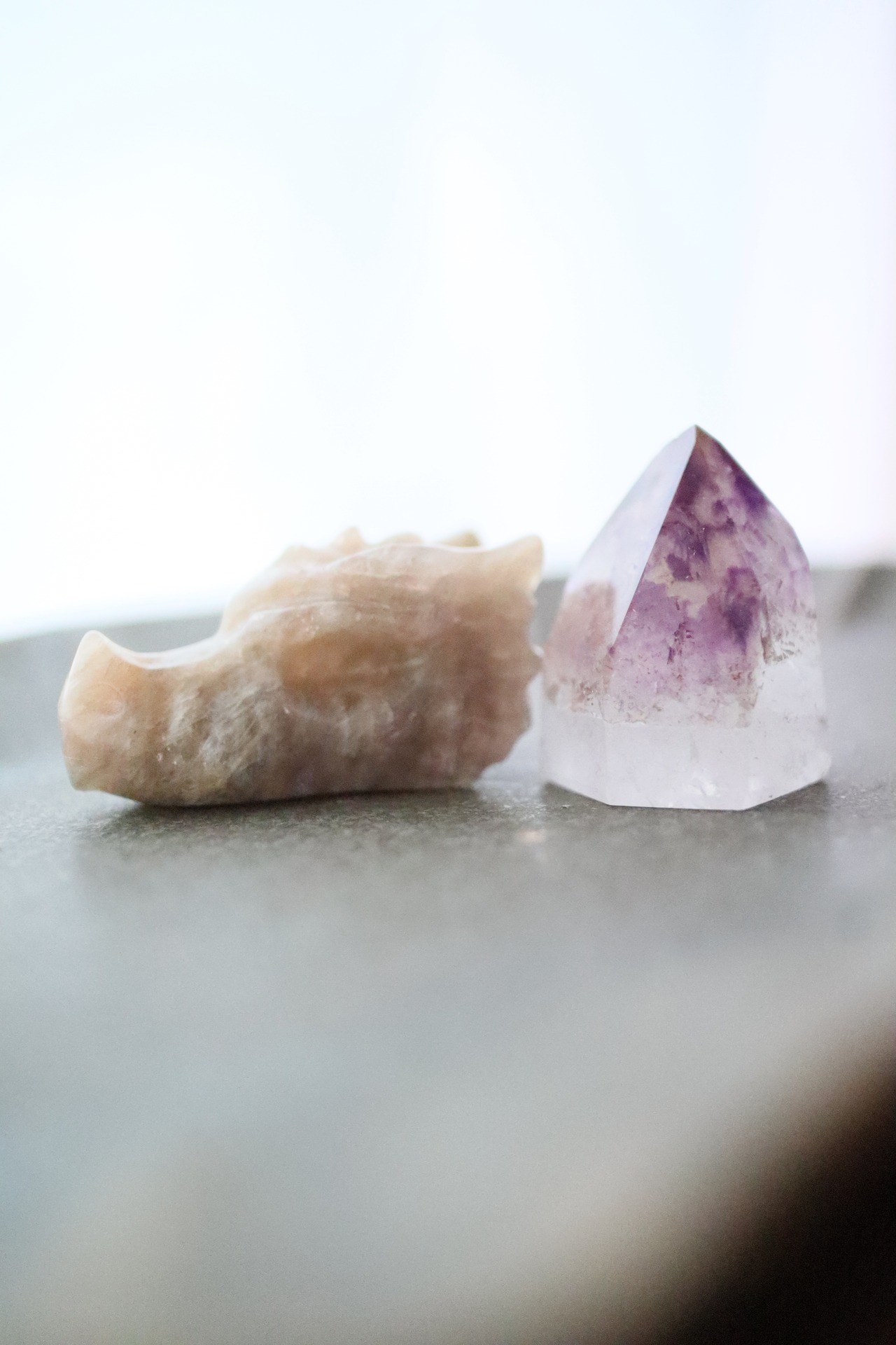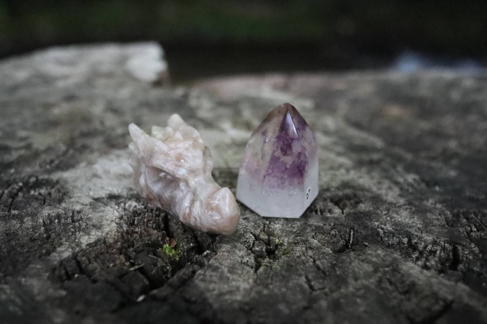 夏至に向けてセレクトされた特別な天然石、ムーンストーンのドラゴンとドリームコートレムリアンのタワーが皆様のもとに届きます。